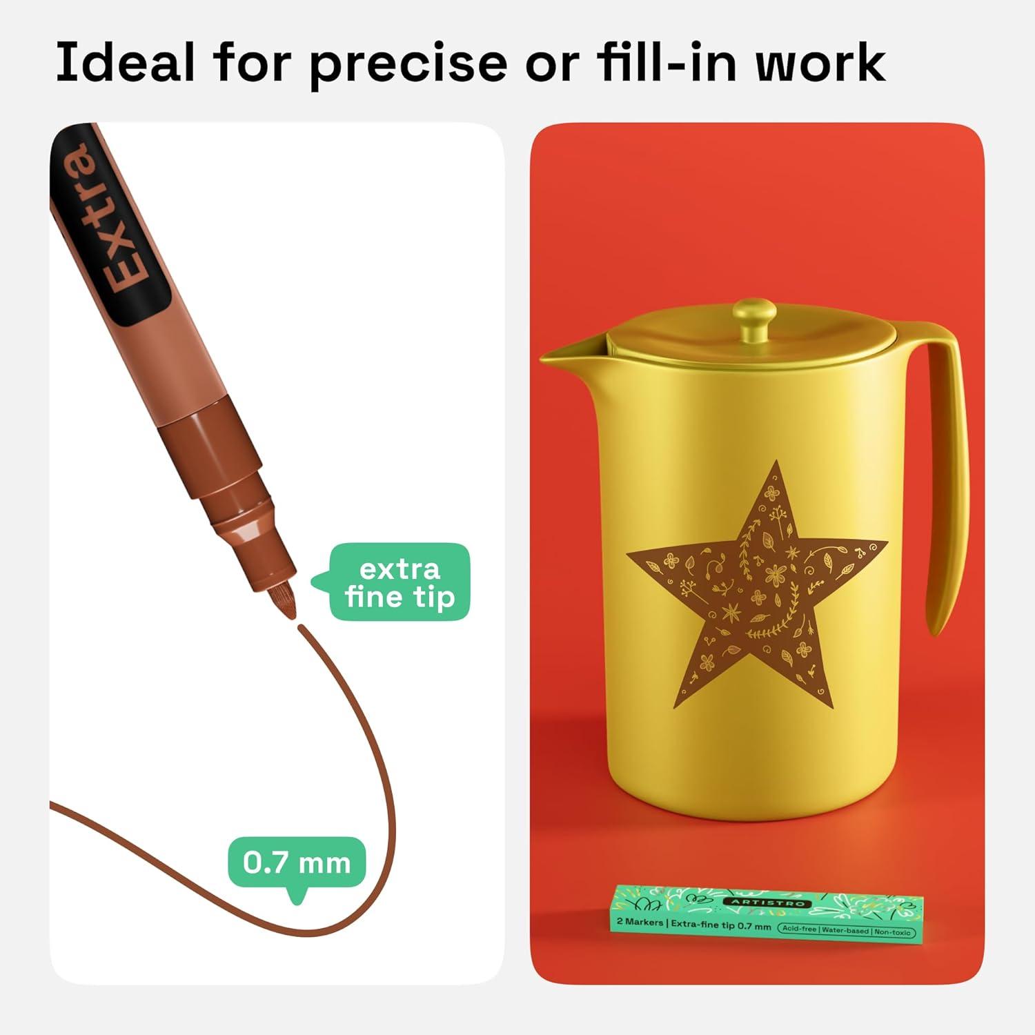 • ARTISTRO 2 Yellow Acrylic Paint Markers – 0.7mm Extra Fine-Tip Paint Pens – Perfect for Crafting, Art Projects, & More(Brown)