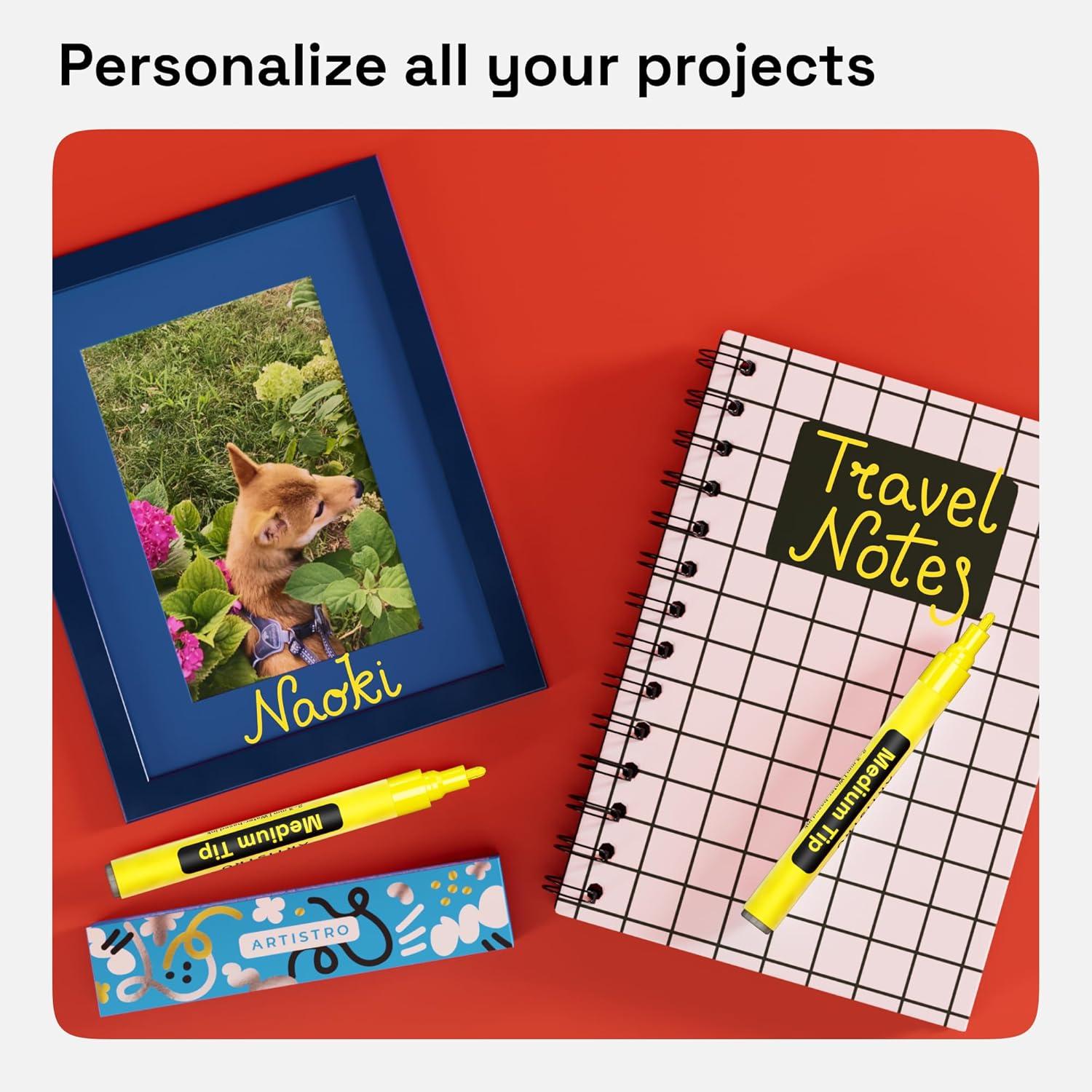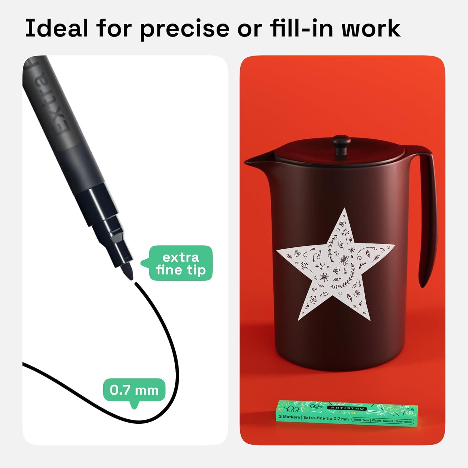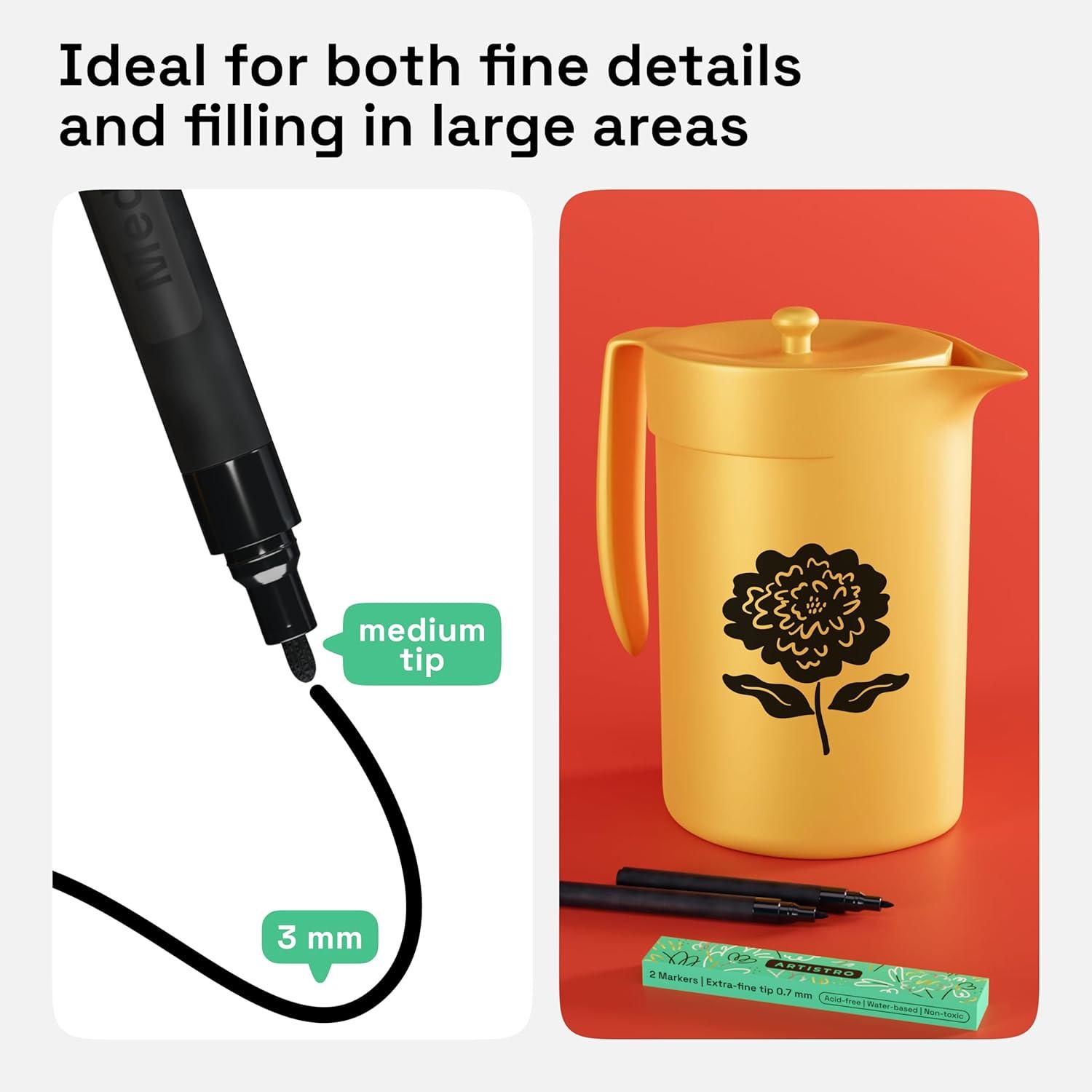 • ARTISTRO 2 Yellow Acrylic Paint Markers – 0.7mm Extra Fine-Tip Paint Pens – Perfect for Crafting, Art Projects, & More(Black)