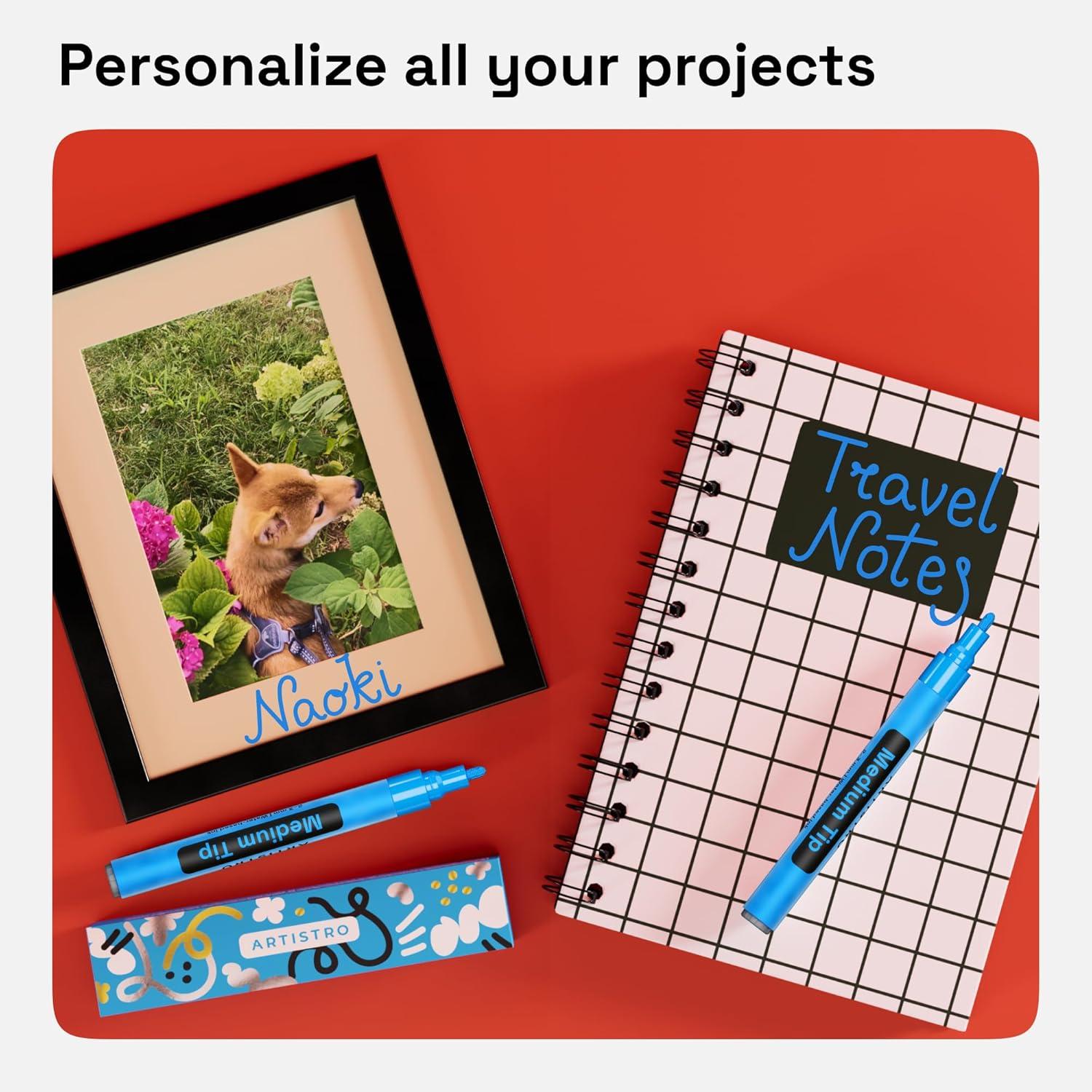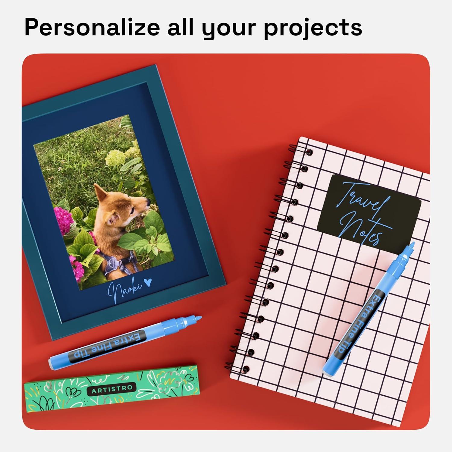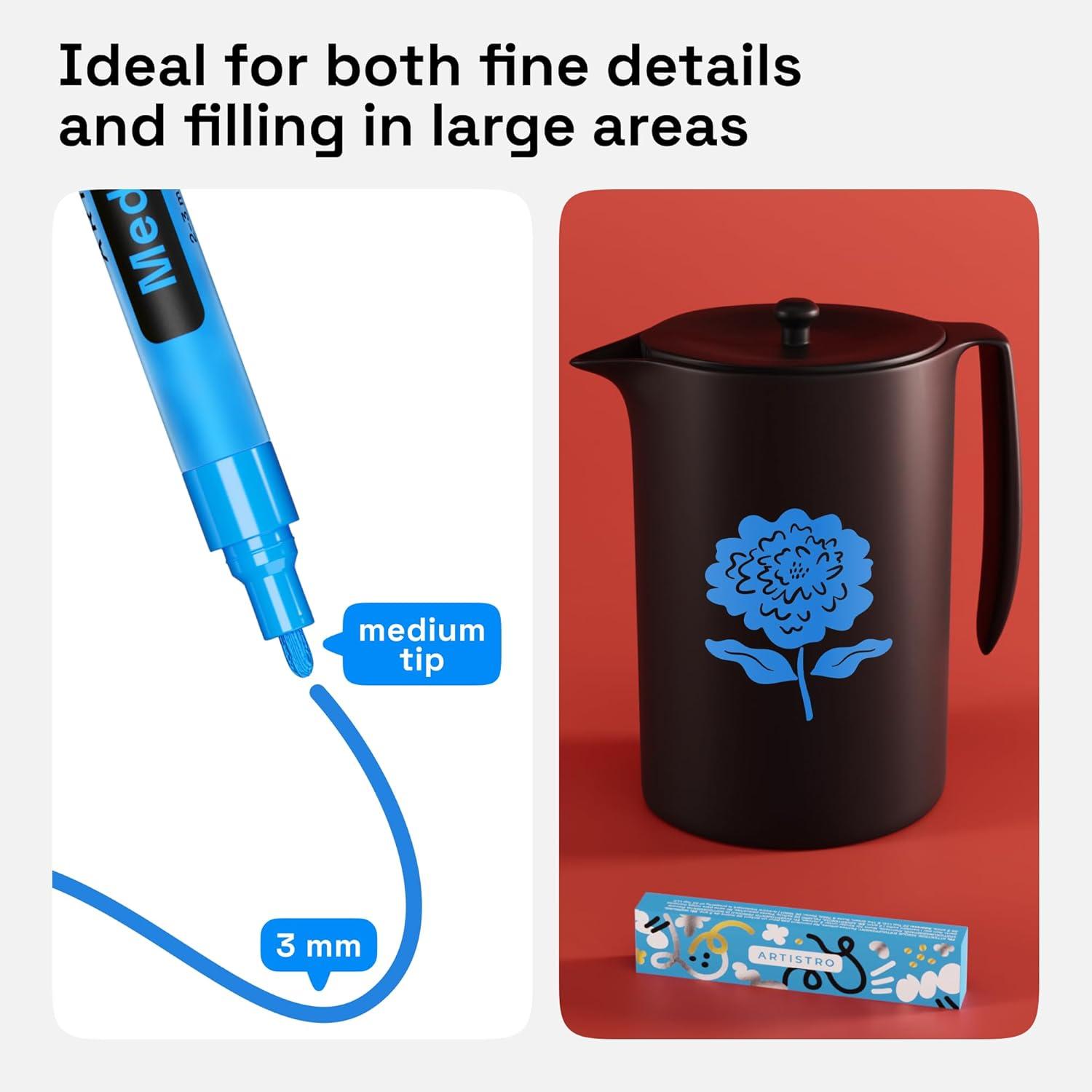 • ARTISTRO 2 Yellow Acrylic Paint Markers – 0.7mm Extra Fine-Tip Paint Pens – Perfect for Crafting, Art Projects, & More(Blue)