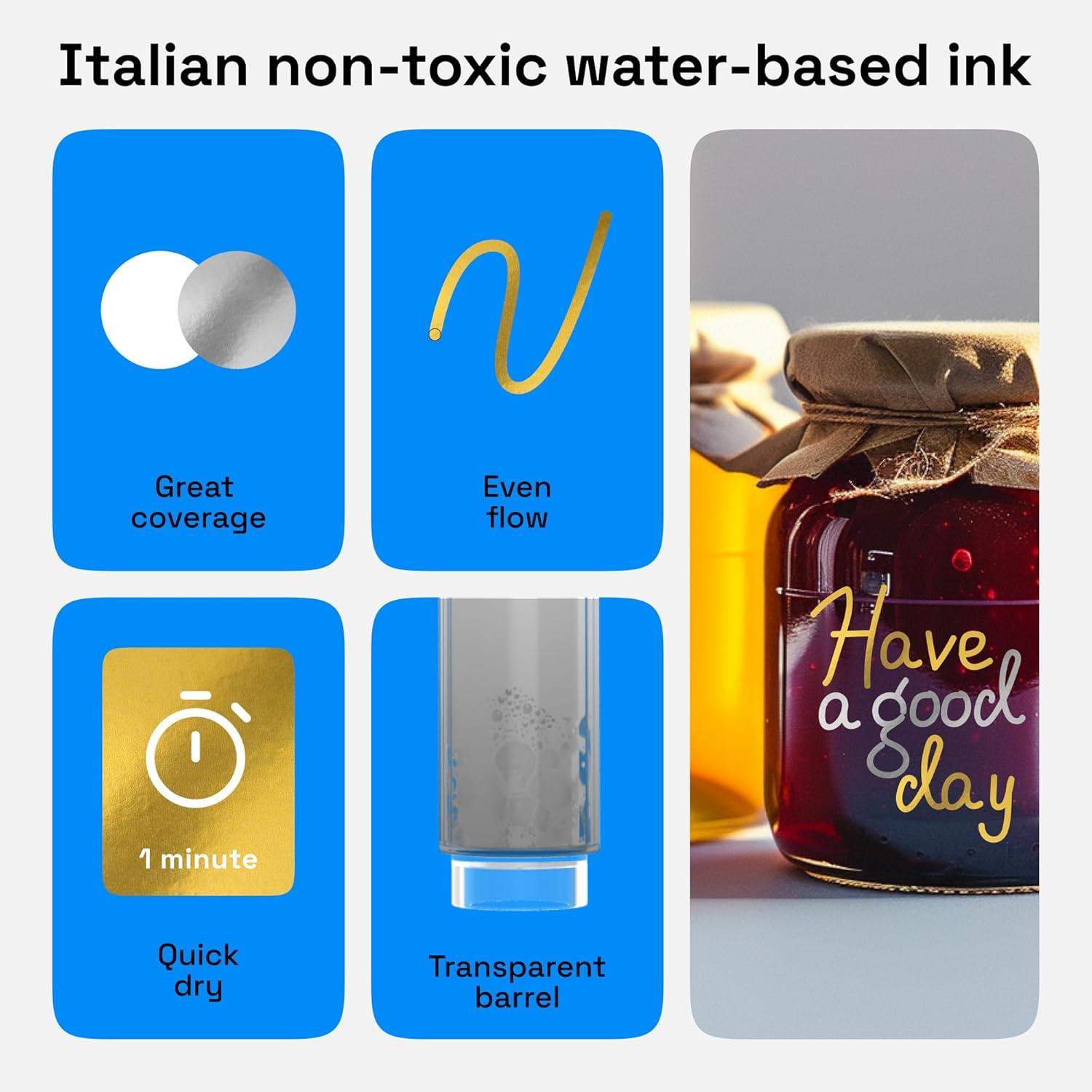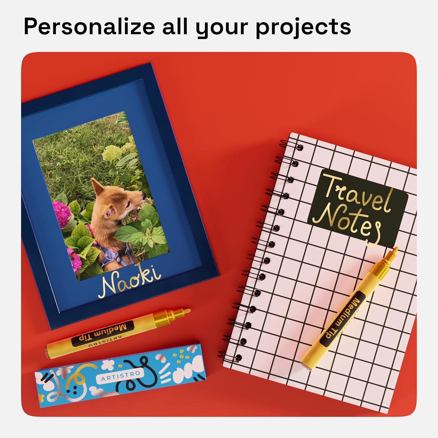 • ARTISTRO 2 Yellow Acrylic Paint Markers – 0.7mm Extra Fine-Tip Paint Pens – Perfect for Crafting, Art Projects, & More(Gold & Silver)