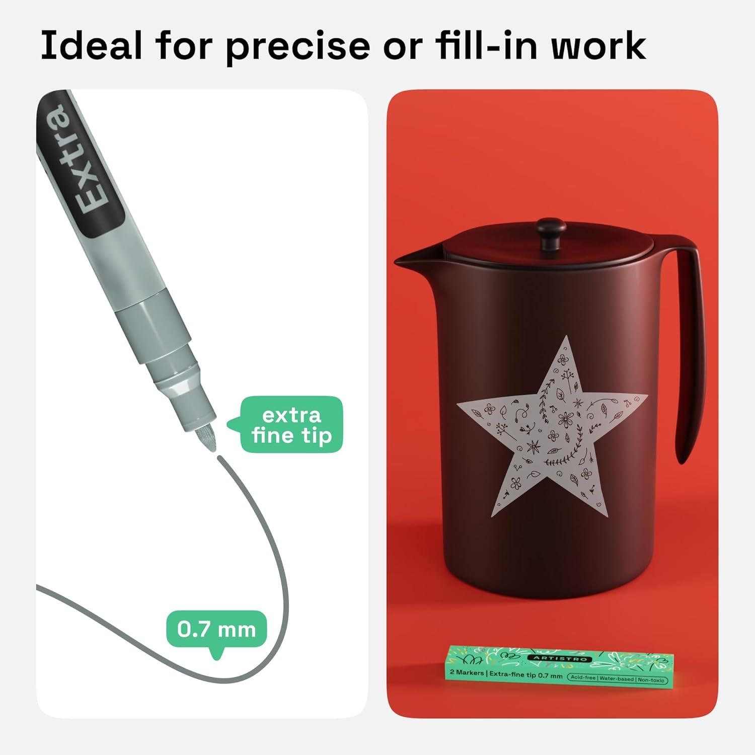 • ARTISTRO 2 Yellow Acrylic Paint Markers – 0.7mm Extra Fine-Tip Paint Pens – Perfect for Crafting, Art Projects, & More(Gray)