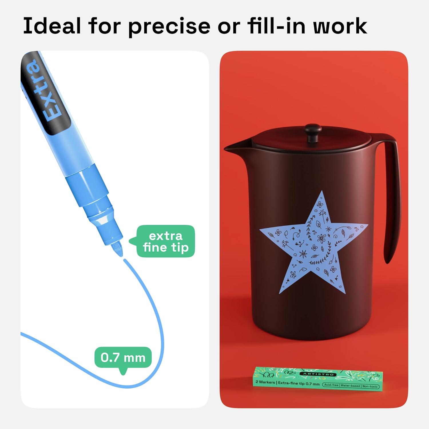 • ARTISTRO 2 Yellow Acrylic Paint Markers – 0.7mm Extra Fine-Tip Paint Pens – Perfect for Crafting, Art Projects, & More(Light Blue)