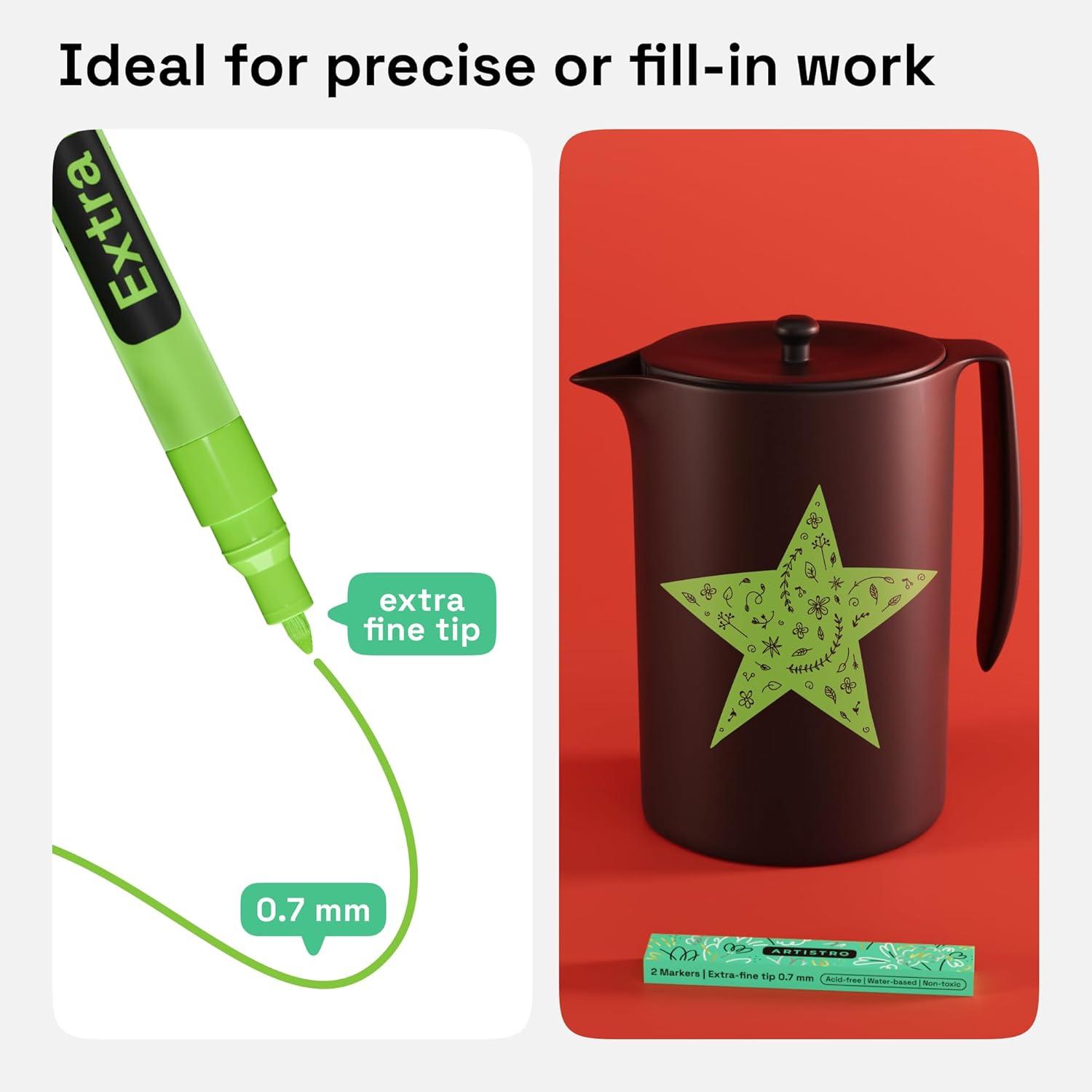 • ARTISTRO 2 Yellow Acrylic Paint Markers – 0.7mm Extra Fine-Tip Paint Pens – Perfect for Crafting, Art Projects, & More(Light Green)