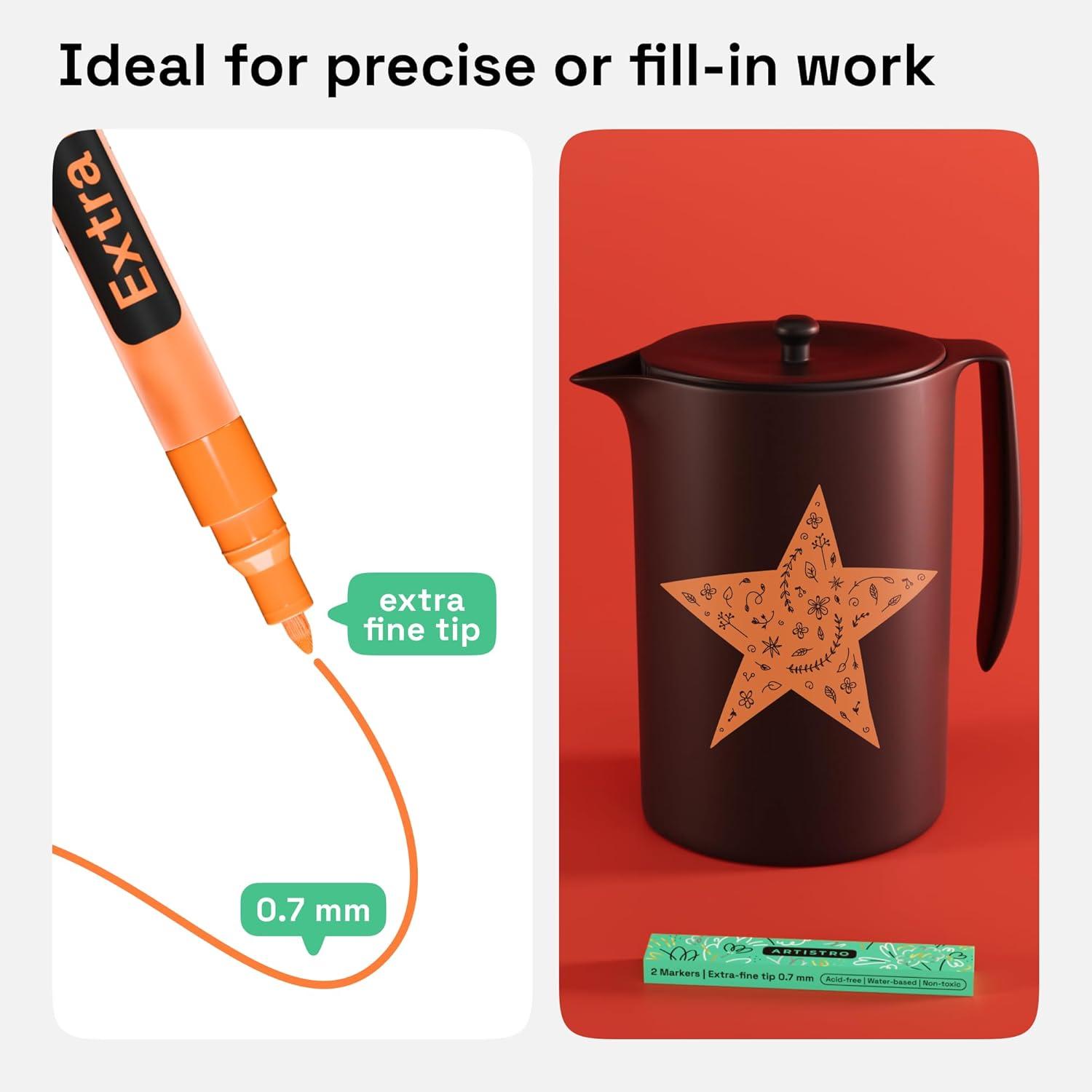 • ARTISTRO 2 Yellow Acrylic Paint Markers – 0.7mm Extra Fine-Tip Paint Pens – Perfect for Crafting, Art Projects, & More(Orange)