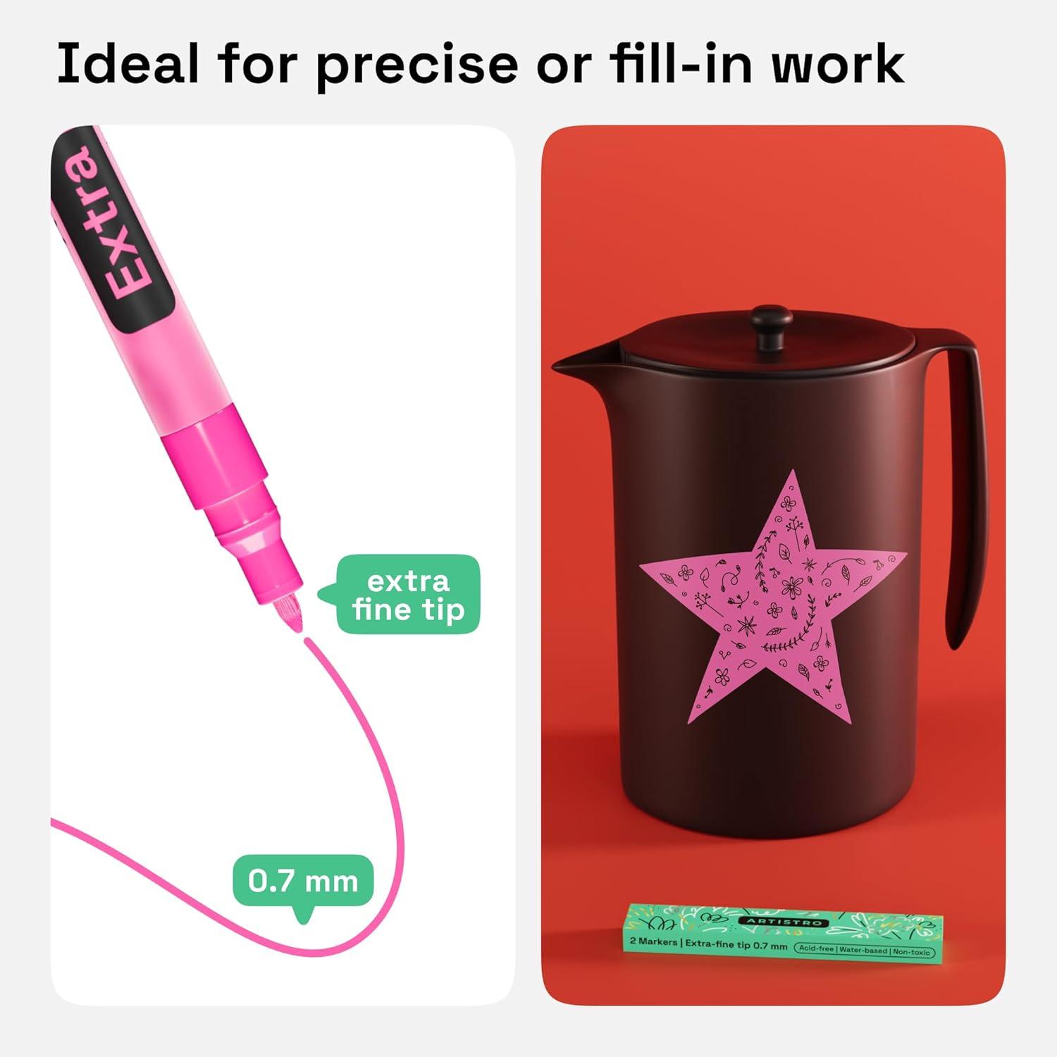 ARTISTRO 2 Yellow Acrylic Paint Markers – 0.7mm Extra Fine-Tip Paint Pens – Perfect for Crafting, Art Projects, & More(Pink)