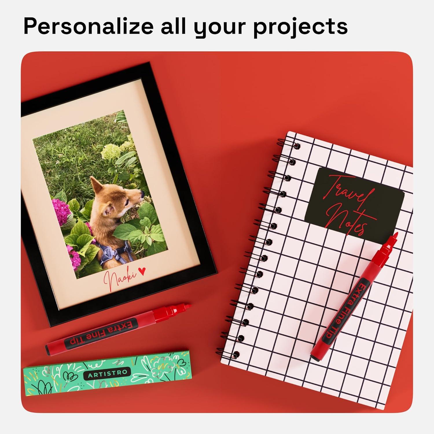 • ARTISTRO 2 Yellow Acrylic Paint Markers – 0.7mm Extra Fine-Tip Paint Pens – Perfect for Crafting, Art Projects, & More(Red)