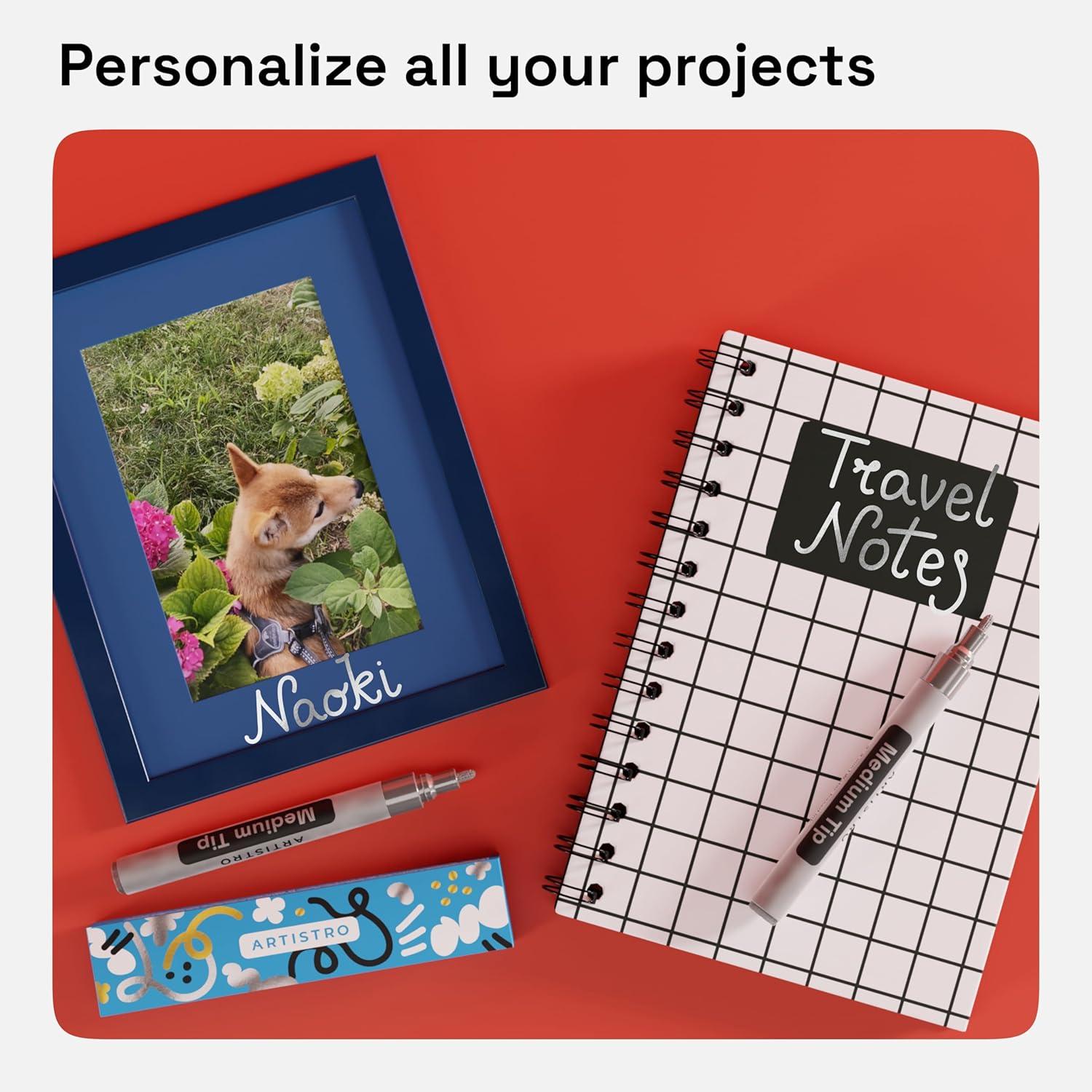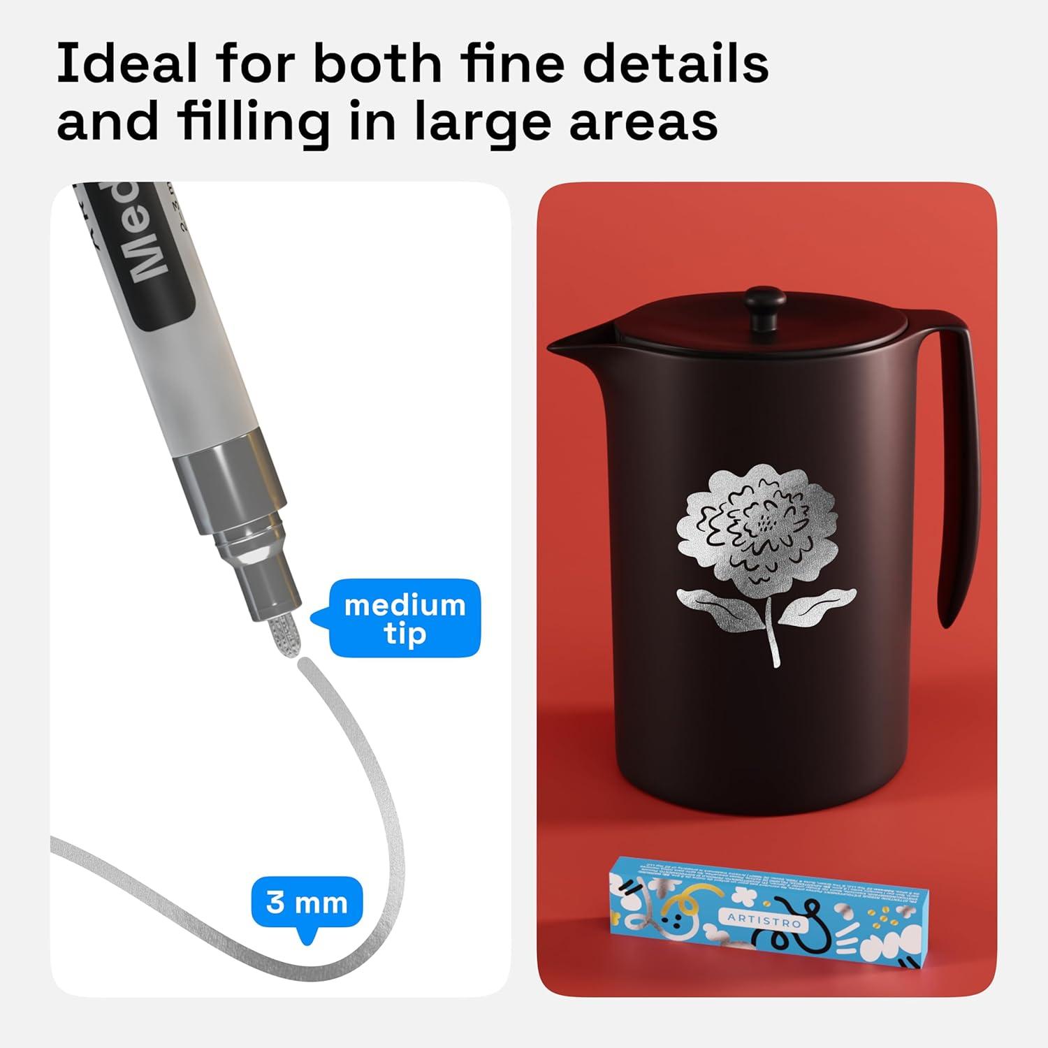 • ARTISTRO 2 Yellow Acrylic Paint Markers – 0.7mm Extra Fine-Tip Paint Pens – Perfect for Crafting, Art Projects, & More(Silver)