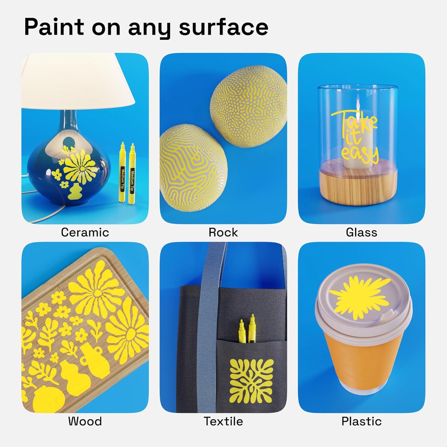 • ARTISTRO 2 Yellow Acrylic Paint Markers – 0.7mm Extra Fine-Tip Paint Pens – Perfect for Crafting, Art Projects, & More(White)
