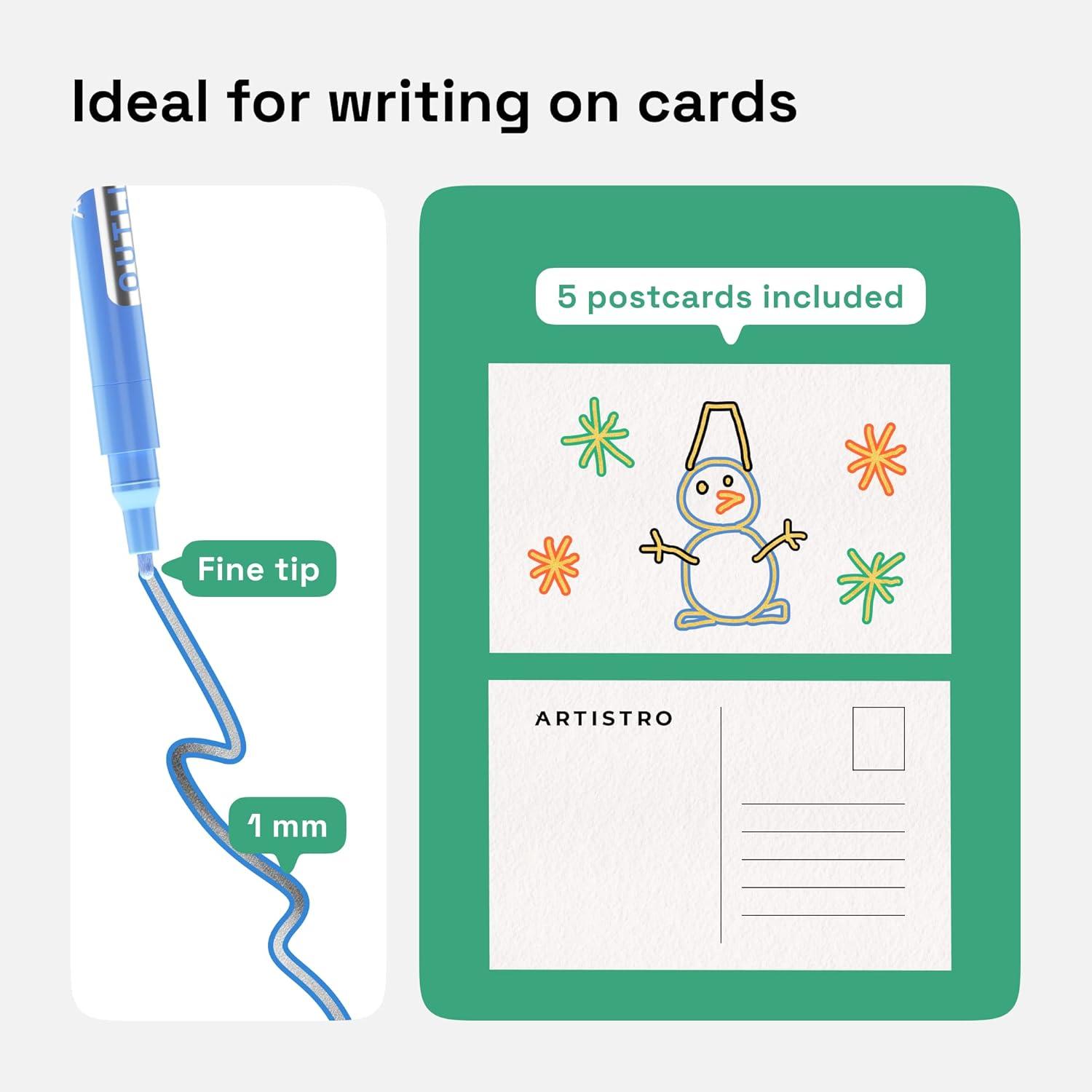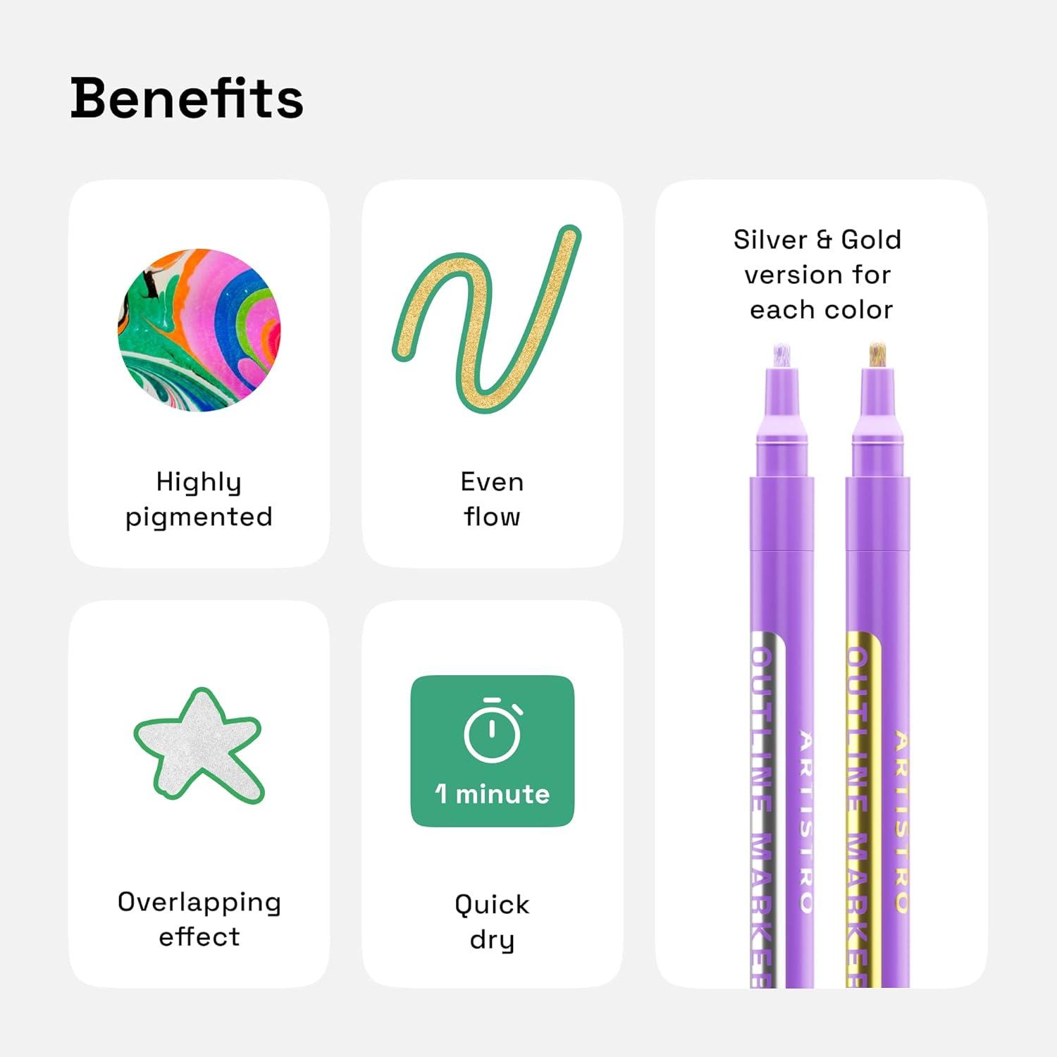• ARTISTRO Outline Markers – 16 Metallic Outline Pens, 5 Cards – Perfect for Doodling, Drawing and Calligraphy