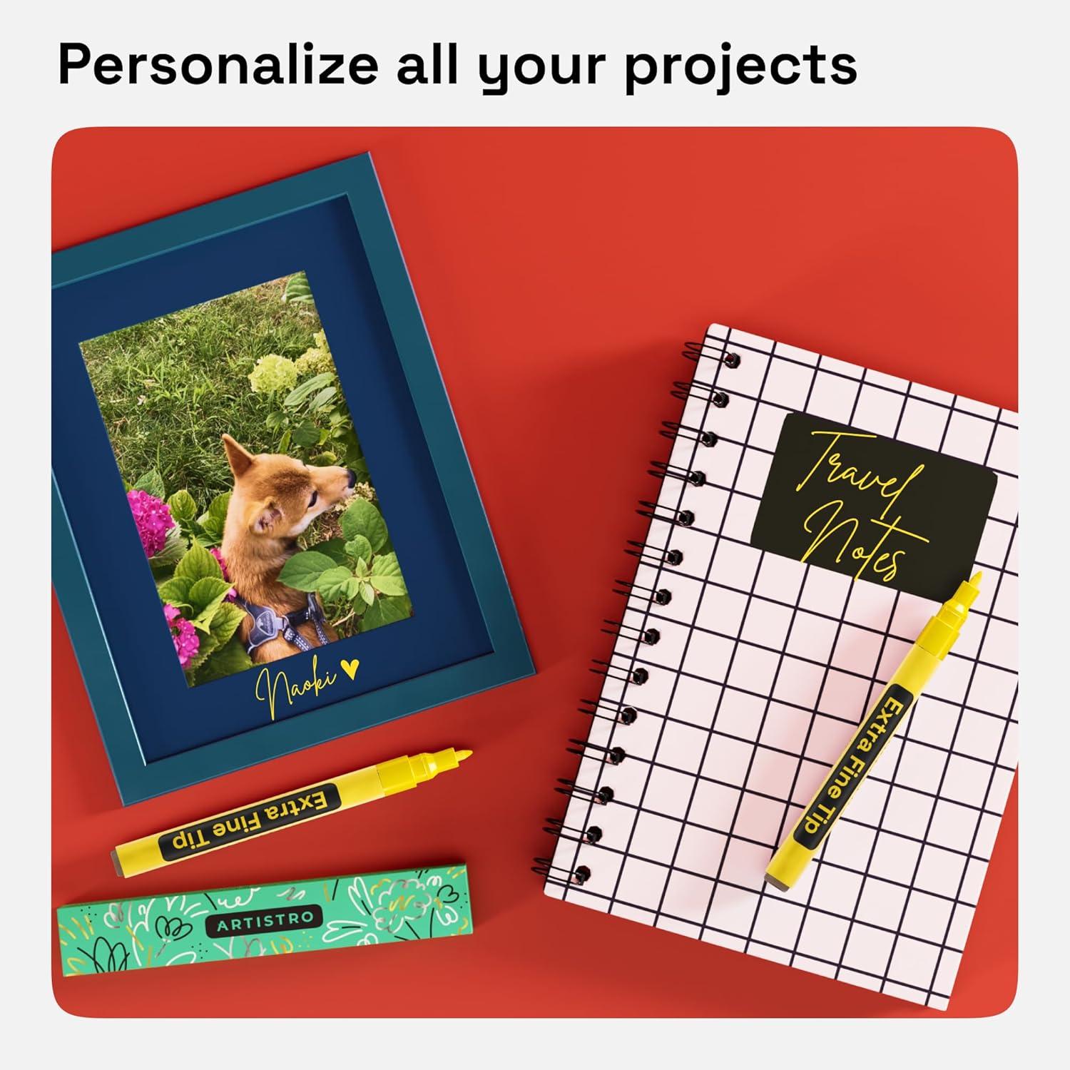 PREMIUM QUALITY: This Artistro 2-pack of extra-fine yellow acrylic paint pens utilizes vivid, acrylic ink that dries quickly to produce a durable opaque and glossy finish on any surface. Each acrylic paint pen is equipped with Italian ink and a durable Japanese nib.