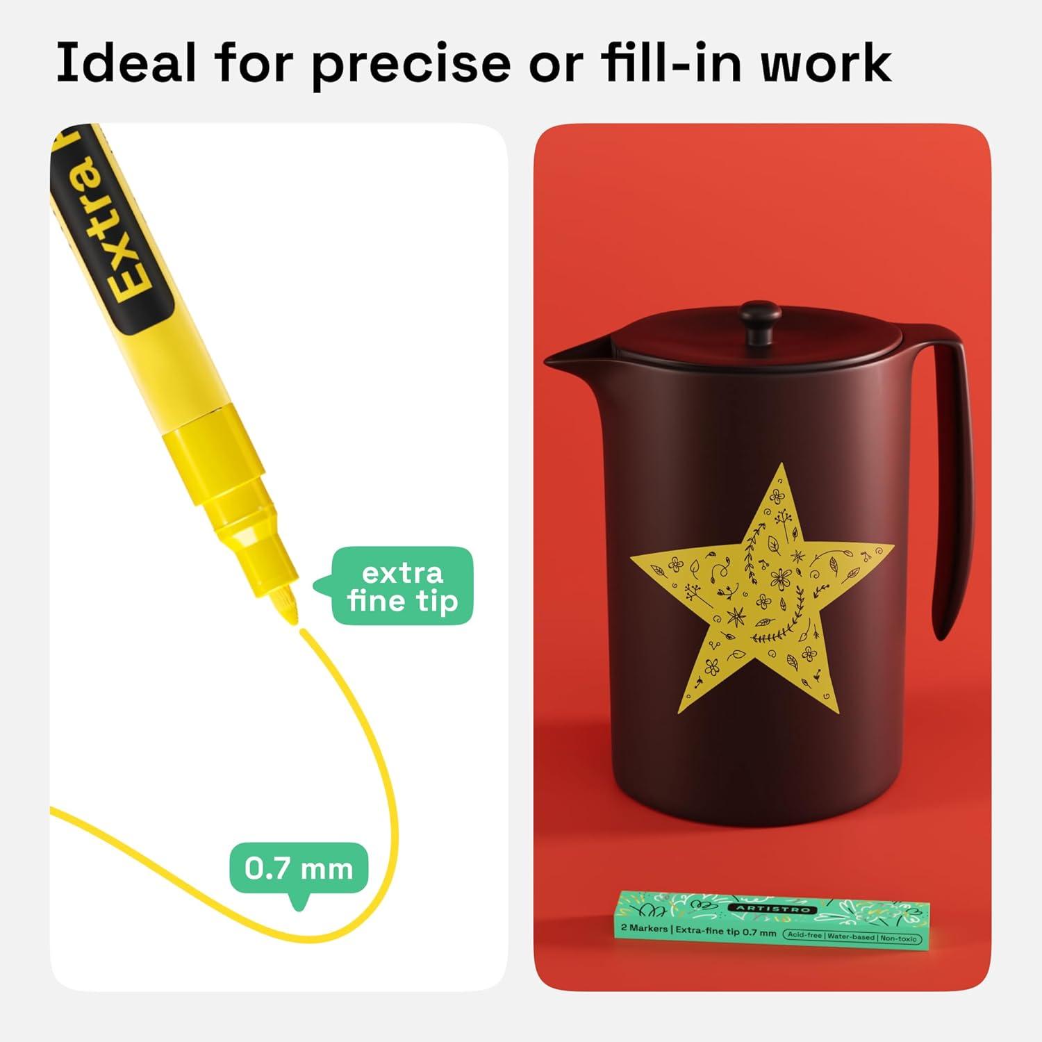 ARTISTRO 2 Yellow Acrylic Paint Markers – 0.7mm Extra Fine-Tip Paint Pens – Perfect for Crafting, Art Projects, & More(Yellow)