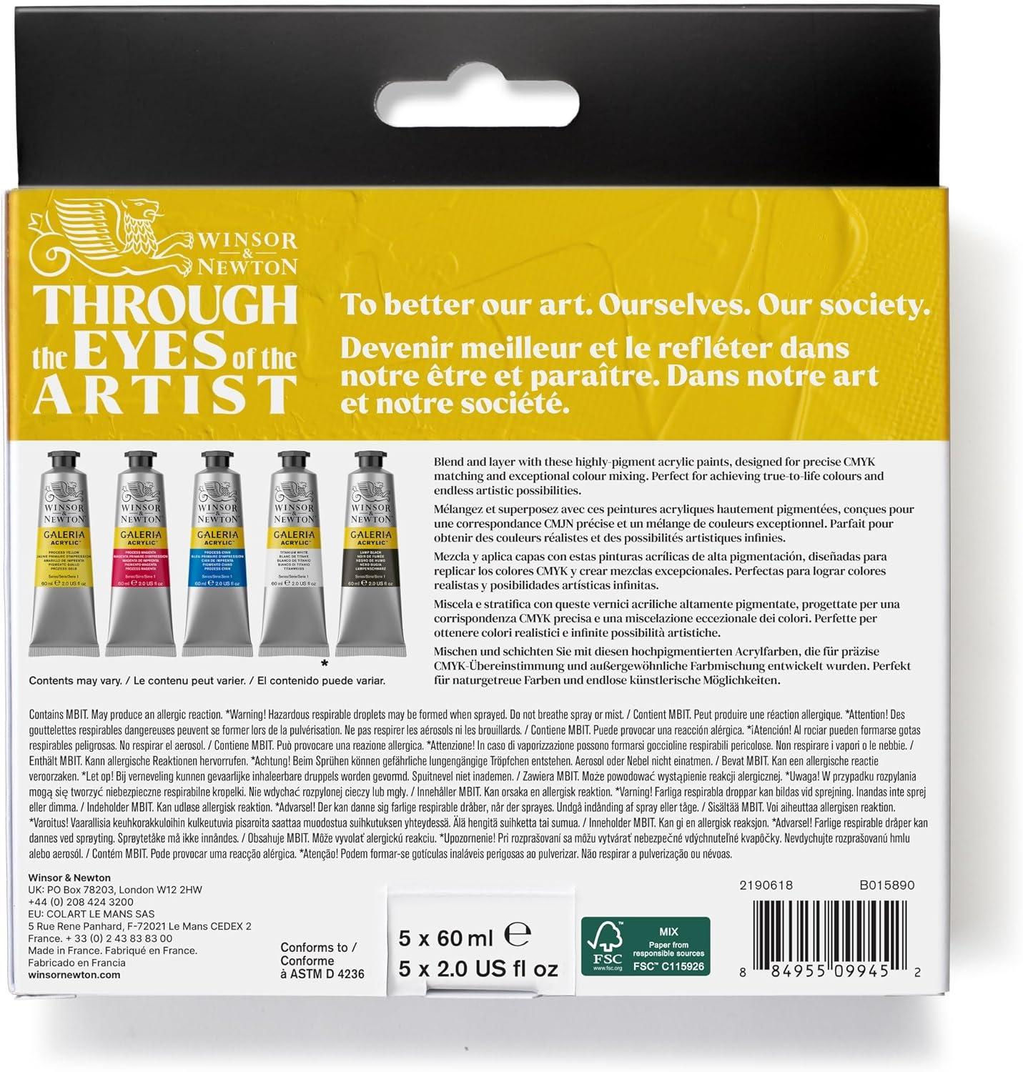 Winsor & Newton Galeria Acrylic Paint Set, 5 x 60ml (2-oz) Tubes, Pastel(5 x 60ml (2-oz) Tubes Process)