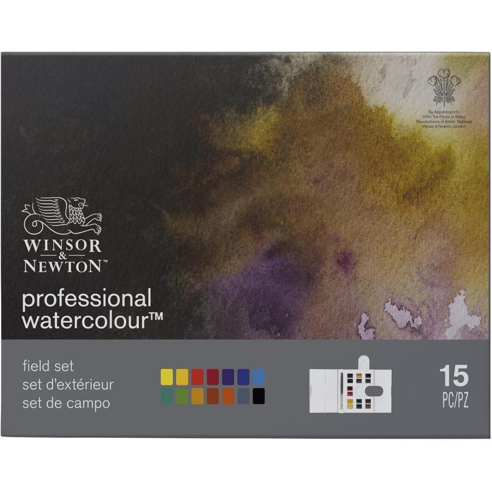Winsor & Newton Professional Watercolor Paint Set, Lightweight Metal Box, 24 Half Pan(Field Box 12 Half Pan)