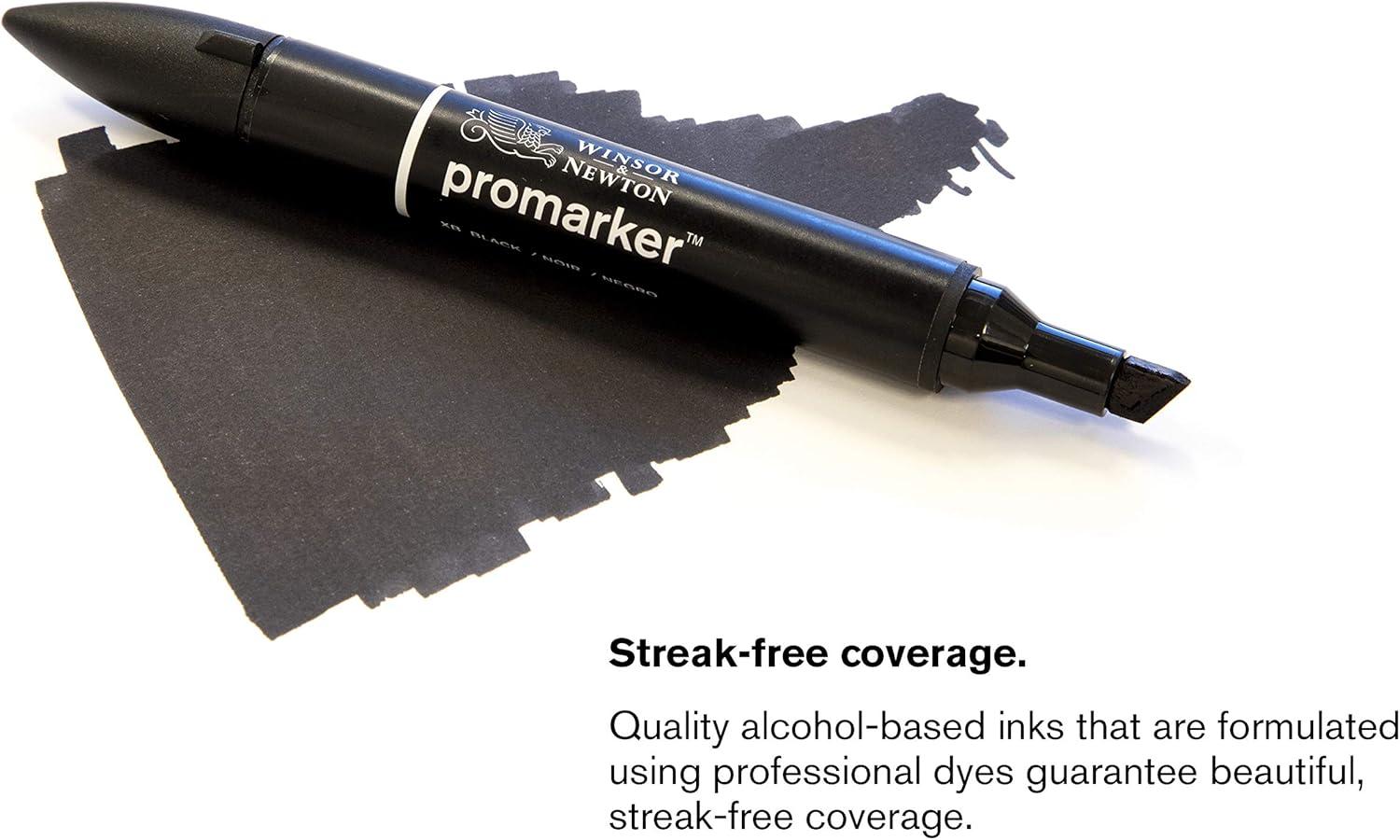 Winsor & Newton Promarker Metallic provides flawless, even application, consistent coverage, and no streaking, making them ideal for design, illustration, comic art, and crafts. Twin-tipped markers: broad and smaller bullet nibs. Set contains Violet, Blue, Green, Silver, Gold, and Red Gold.