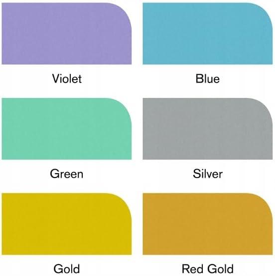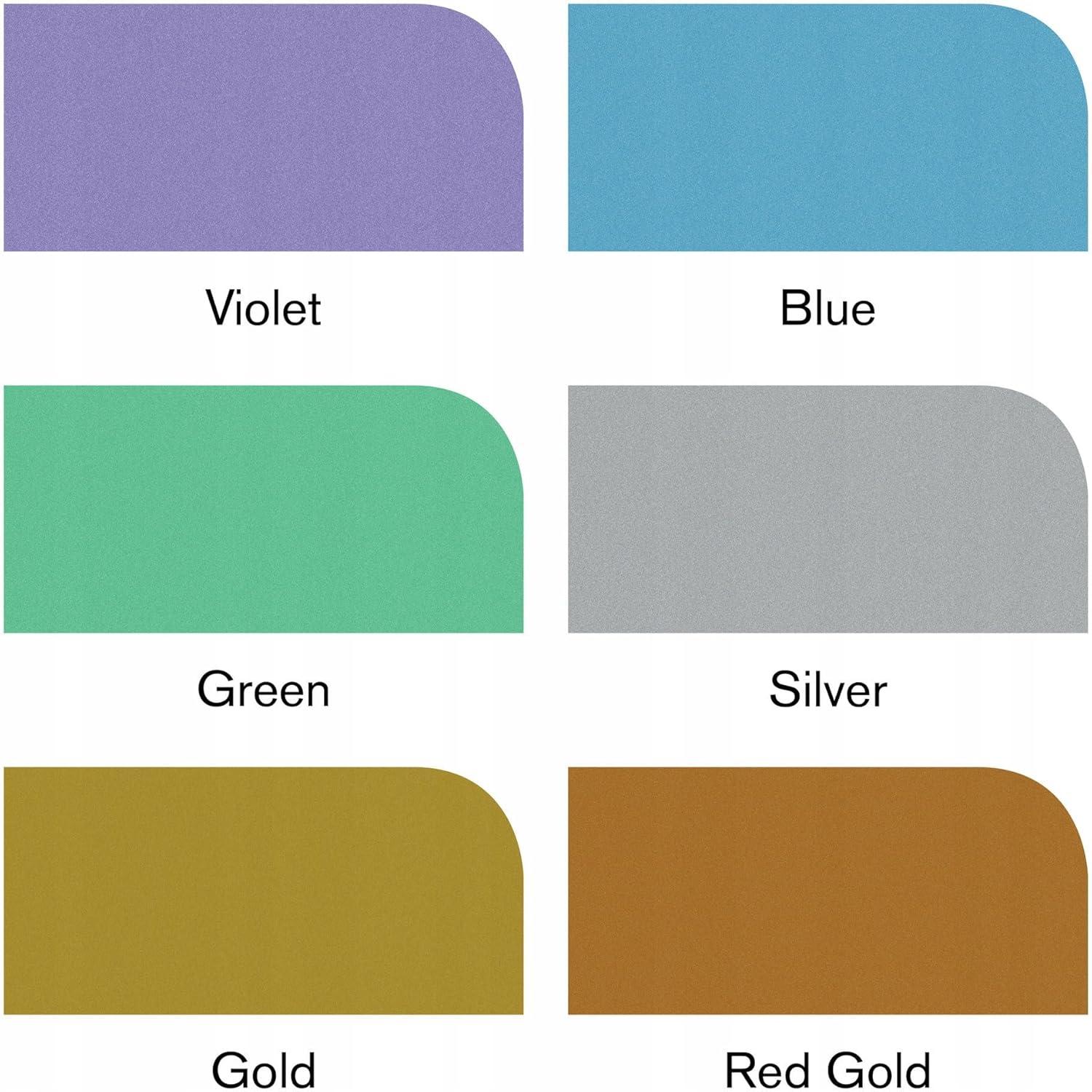 Set contains Violet, Blue, Green, Silver, Gold, and Red Gold.