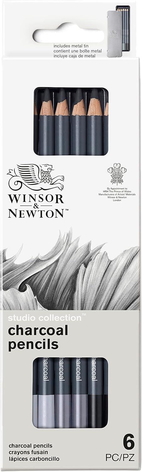 Winsor & Newton Studio Collection Artist Pencils, Graphite Pencils, Set of 12(6 Charcoal Pencils)