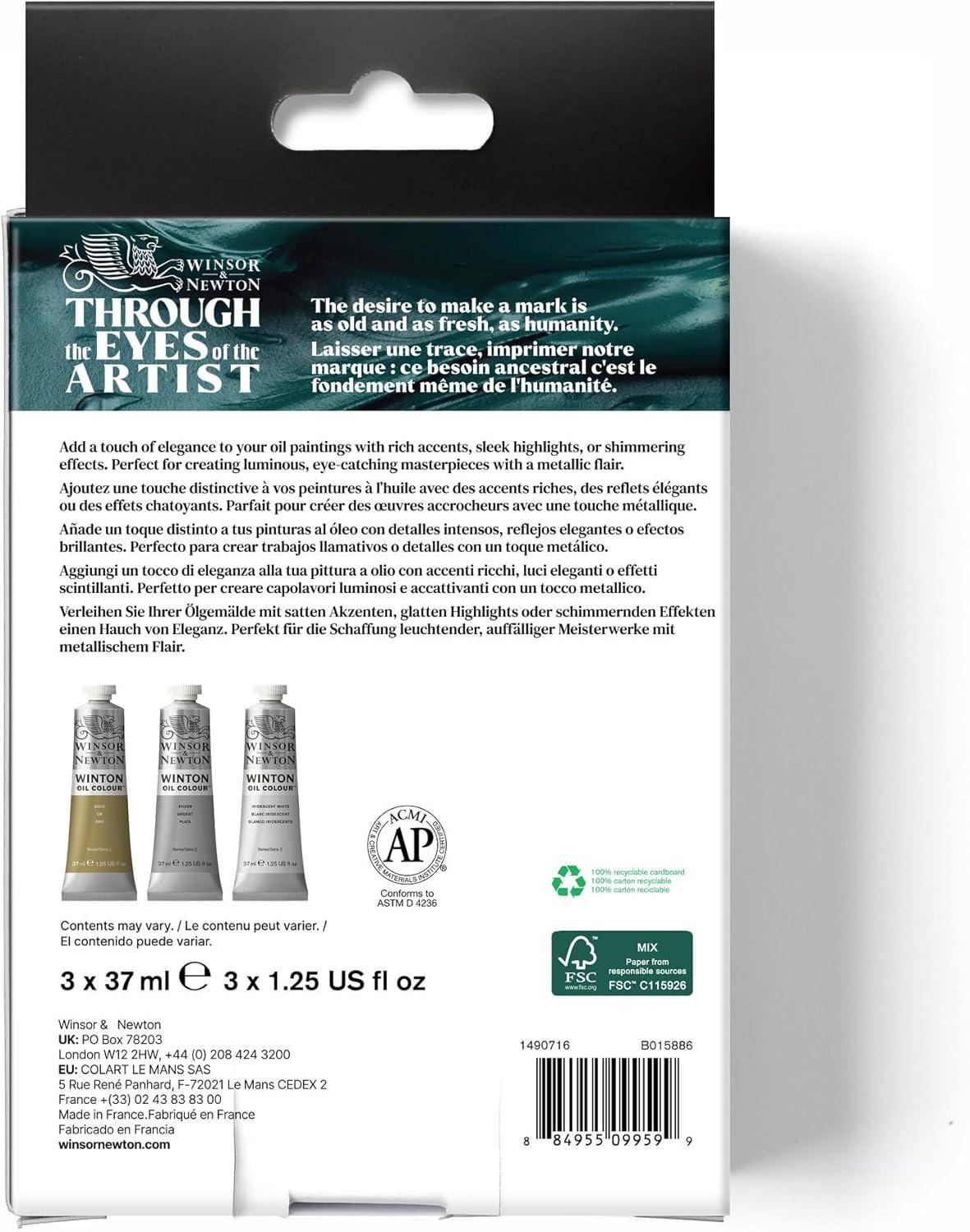 Winsor & Newton Winton Oil Color Paint Set, 20 x 12ml (0.4-oz) Tubes(Metallic – 3 x 37ml)
